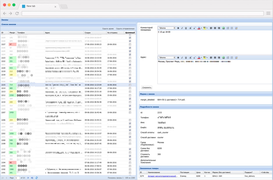 Orders control panel for e-shop "ikmed.ru"